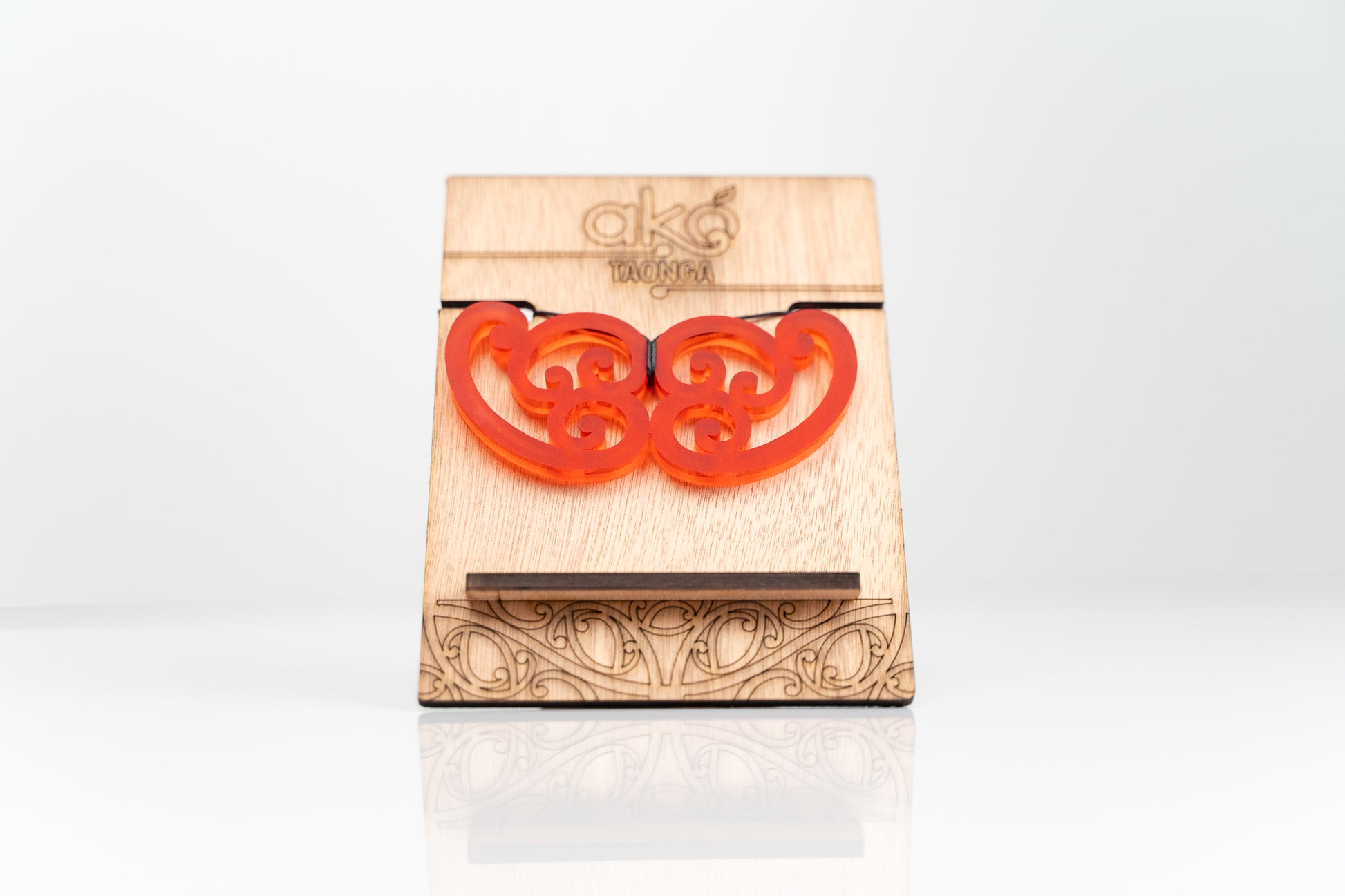 Our taonga also come with a laser-cut wood display stand featuring intricate kōwhaiwhai designs. Perfect for gifts, honouring graduations, or treating yourself!