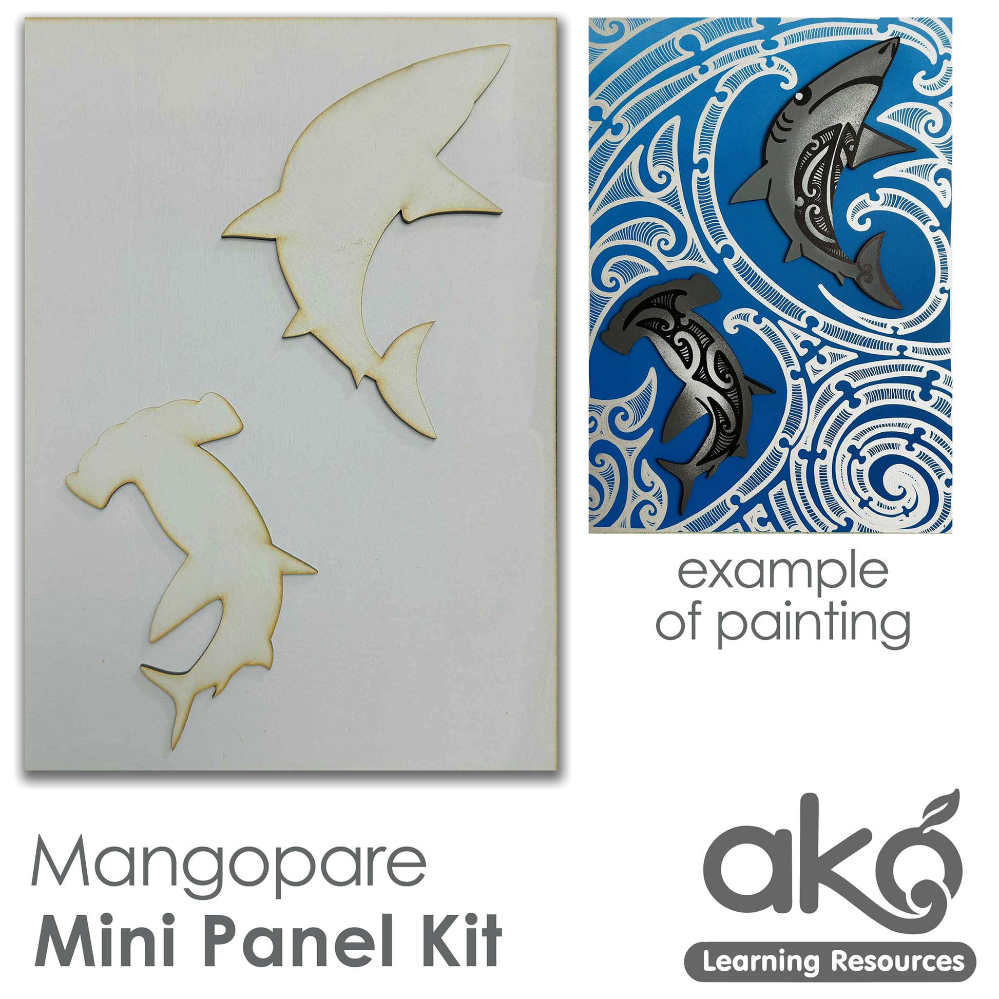 The product image displays the included unpainted materials on the left and an example of a finished panel made from the same kit on the right. Please note, paints and pens are not part of the kit.